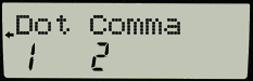 • 소숫점 표시 & 천자리수 표시기호 의 변경. Dot(.) vs Comma(,) 1단계 : 화면에 Disp 1 이 나올 때까지 MODE 키를 연타합니다. 2단계 : 1 ▶ 를 눌러서 아래의 선택화면을 표시합니다. 3단계 : 1 번이나 2번을 택합니다. (소숫점이 컴마로 변하는 것을 보고싶지 않으면 1번을 선택하는 것이 좋습니다) 1 (Dot) : 소숫점 표시를 점.으로 하고, 천단위 분리를 컴마 ,로 한다. 2 (Comma) : 1과 반대로 소숫점 표시를 컴마, 로 하고 천단위 분리를 점.으로 한다. 이것은 쉼표(,)와 점(.) 의 표시 역할을 서로 바꾸는 것일 뿐입니다. 천단위 자릿...