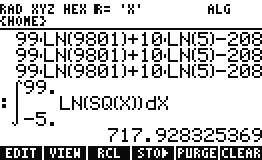 참값은 198*ln(99)+10*ln(5)-208 = 99*ln(9801)+10*ln(5)-208 인데,
